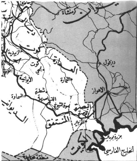 الخلیج الفارسی فی خریطه العراق السیاسیه، نقلت عن کتاب «لغهالمنجد»، الطبعه الخامسه عشر، المکتبه الکاثولیکیه، بیروت – 1965 م.