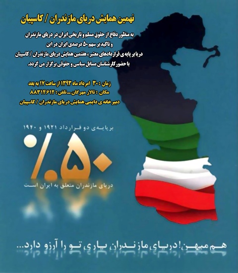 و «من ایرانی» به احترام و با رعایت قانون اساسی و لازمالاجرا بودن آن به ویژه اصول 8،9،45،48،50، 78،152و153و معاهدات محیط زیستی و مبارزه با آلودگی دریا در سالهای 1351، 1362و 1369 دولتین ایران و شوروی و با توجه به مصوبه و تایید عهدنامههای 1921 و 1940 توسط شورای انقلاب (و فصول ملغیالاثر شده عهدنامه 1921 به تصویب شورای اتقلاب) و نظر به اینکه زبان فارسی و روسی در این عهدنامهها برای فهم اصطلاحات آنها کافی است، هرگز نمیپذیرد که از سهم ایران فرو کاسته شود، چه به صورت سهامی و چه به صورت مستقل: سهم ایران مساوی سهم شوروی و چهار ساحلنشین شوروی سابق به طور مجموع سهمشان مساوی ایران است.