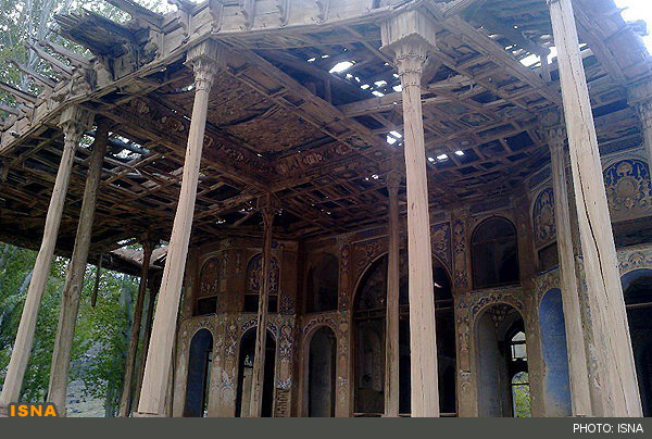 عظیمی تصریح کرد: در سال ۱۳۶۸ یکی از ستونها و قسمتی از سقف ایوان بزرگ فرو ریخته شد و شیشهها، درها و سنگهای قیمتی مجموعه به یغما رفت و در سال ۱۳۷۳ بار دیگر قسمتهایی از این بنای ارزشمند تاریخی فرو میریزد و در همین زمان روستائیان از این محل به عنوان آغل به منظور نگهداری احشام خود استفاده میکنند و در سال 1384 بخشهای عمده از سقف، دیوارها و کف طبقات عمارت چهلستون فرو ریخت و تزئینات عمارت تخریب و به یغما رفت و در حال حاضر نیز روند این تخریب با سرعت هرچه تمامتر به پیش میرود.
