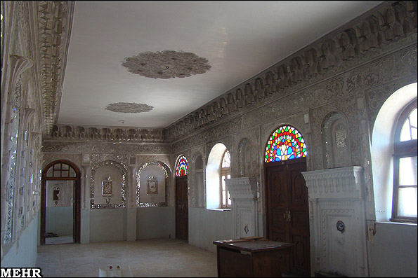 همچنین درهای موجود در این عمارت چوبی بوده که با شیشههای رنگی تزئین شدهاند.