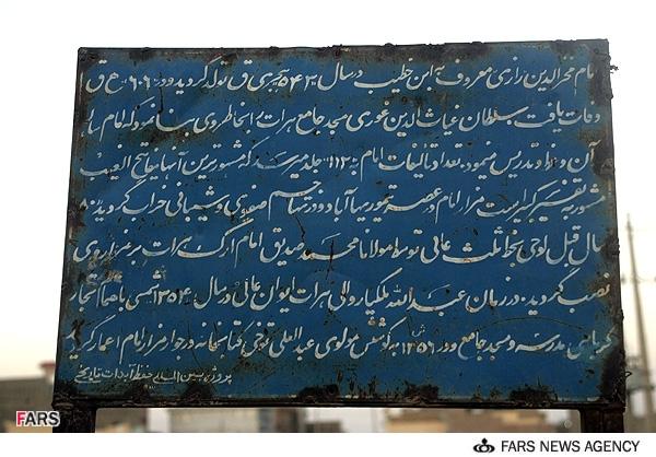 در سالهای اولیه حکومت ظاهر شاه در سال 1320 خورشیدی، زمانی که "عبداللهخان ملکیار" والی هرات بود، ایوان بزرگی در مقابل آرامگاه فخر رازی ساخته شد که تا زمان تجاوز شوروی سابق به افغانستان، پا برجا بود.