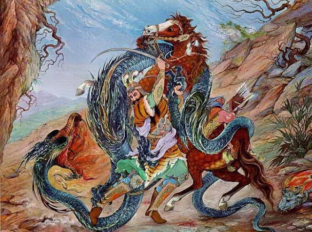 وی افزود: سخنوری بالایِ بلند و به آیینِ یار را به سرو مانند میکند؛ سخنوری دیگر به صنوبر سومین به نارون. بسته به پندار و پسند خویش هر کس میتواند ترفندی دیگر ادبی را به کار بگیرد. اما نمادهایی استورهای بدین گونه پدید نمیآیند. هنر فردوسی هم در این ویژگی همچنان دیده میشود که او آنچه را که در آبشخورهای وی بوده است کوشیده است به همان سان در شاهنامه بسراید و باز نماید. پایبندی فردوسی به آبشخورهای خویش. در آن بخشی که به ادب، هنر، زیباشناسی باز میگردد فردوسی آفریننده است این که فلان نبرد رستم را چگونه گزارش کرده باشد این چگونگی باز میگردد به فردوسی اما آن نبرد آفریدهٔ ذهن او نیست. اینکه نبرد با کدامین پهلوان انجام میگیرد درکجا و چرا؟ پیکرهٔ داستانها را استاد از آبشخورهای خود ستانده است در این آبشخورها هم آنچه ایرانیان به آن شیوهای که گفتیم پدید آورده بودند باز تافته است. پس نمی توان پذیرفت که فردوسی رستم را بر پایه ی آرمانهای خویش آفریده باشد.