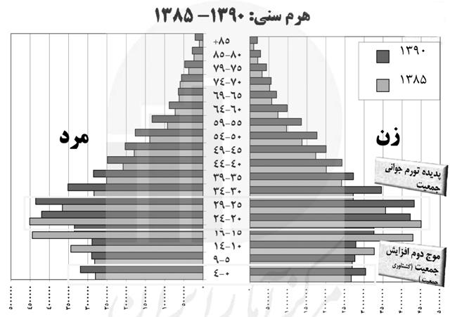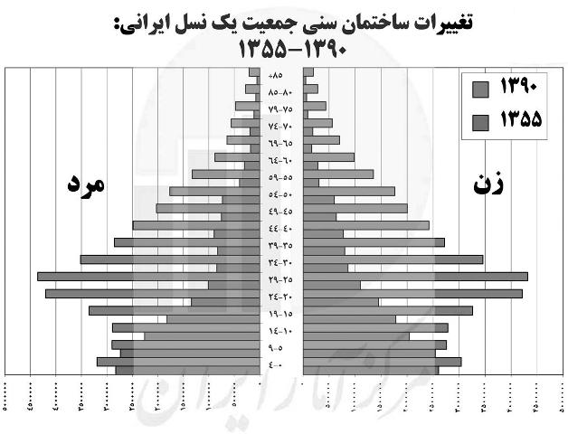 برای پاسخ به این پرسش، نگاهی به هرم سنی جمعیت میاندازیم تا از چگونگی توزیع جمعیت بر حسب سن و جنس آگاه شویم. در مطالعات جمعیتشناسی، هرم سنى نمودارى شامل دو محور عمودى و افقى است. محور عمودى نماینده گروههای سنی و محور افقى نشاندهنده تعداد افراد هر گروه سنى مىباشد. به طور معمول گروههای سنی در فواصل پنج ساله تقسیمبندی میشوند. سمت راست نمودار به ترکیب جمعیتی زنان وسمت چپ به مردان اختصاص دارد. در هر طبقه تعداد افراد را بهصورت مستطیل افقى ترسیم مىکنند که طول آن تعداد افراد یک سن یا گروه سنى در فاصله سنی مربوطه را نشان میدهد.