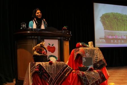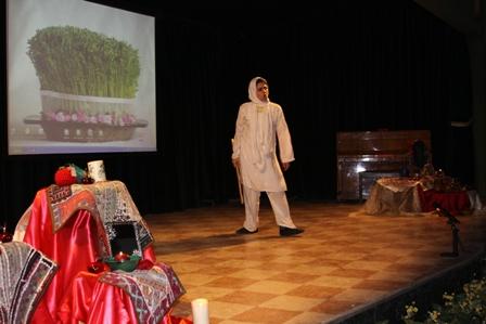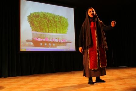 در ادامه بانو ایراندخت نقالی روایت رزم ایران و توران را اجرا کردند و مجری برنامه اشعاری از مولانا برای عشق خواند.
