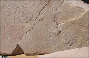 نمونهای از ترکهای بازشده در آرامگاه کورش. کارشناسان میگویند این ترکها در اثر استفاده از ابزار سنتی و غیرعلمی در مرمتهای اخیر آرامگاه بر بدنهی آن ایجاد شده است. |