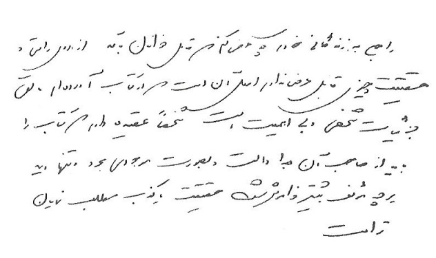 “خداوند بشما تندرستی و عمر دراز و شادمانی بدهد تا حقایق بسیاری را با این زبان ممتازی که دارید و هدیه ی خدایی است روشن ساخته بمردم…، مورخین روم و یونان که این همه تناقض دارند بگذارید پدر یکدیگر را بسوزانند. چرا باید یک نفر ایرانى آتش بکاخ عظمت آن ها بزند موجبات خرابی را فراهم ساختهاید که عبارت است از آن همه شهادت های دروغ و مجعول و ضد و نقیض همانا نقل آن خانۀ آن ها را خراب خواهد کرد… .