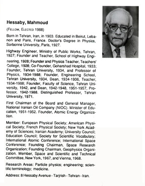 عضویت پروفسور حسابی در آکادمی علوم نیویورک