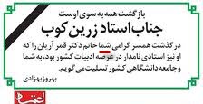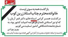 و از اون بدتر رسانههایِ به اصطلاح آگاه و روشنفکرِ ما که چقدر تو باغ هستند: چاپِ آگهیِ تسلیت در روزنامهیِ اعتماد برایِ درگذشتِ شادروان دکتر قمرِ آریان به زندهیاد دکتر زرینکوب 13 سال پس از مرگش خطاب به وی.