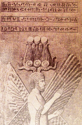 نقاشی والیس از سنگنگارهٔ مرد بالدار در پاسارگاد (ذوالقرنین)