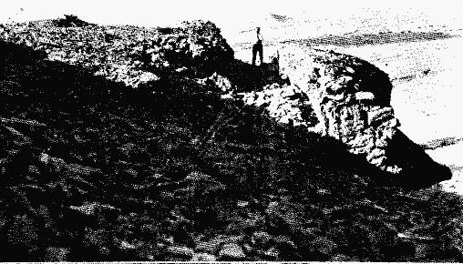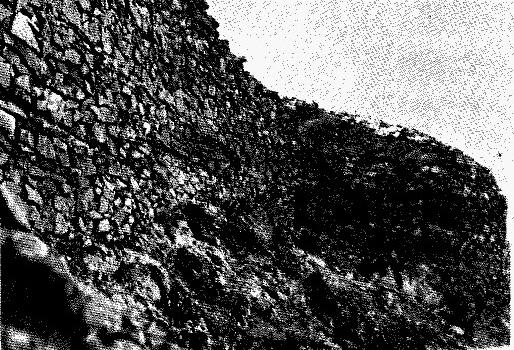 سوم فاصله بین برآمدگی شمالی و غربی ـ در جنوب این قسمت بقایای چند دیوار سنگ و ساروجی به ارتفاع 3 تا 4 متر وجود دارد که احتمالاً برای تأمین ارتباط دو برآمدگی بوده است. (شکل شمارهی 6) .