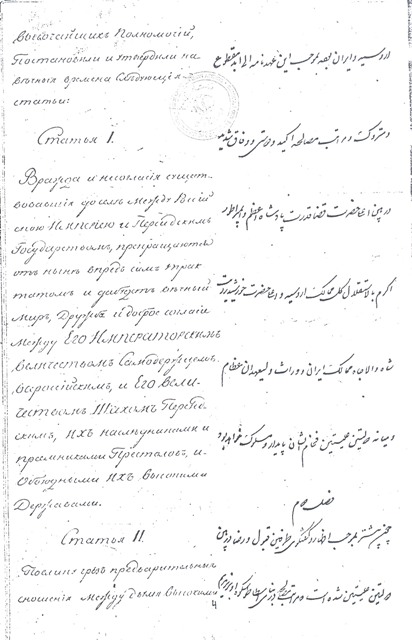 عکس قرارداد گلستان به روایت بایگانی اسناد وزارت امور خارجه در پی میآید. متن کامل عکسها در قالب pdf را از اینجا بارگذاری (دانلود) کنید.