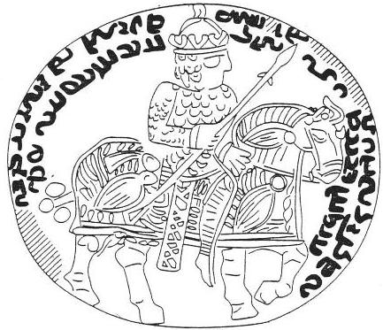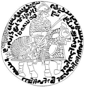 تمام مهرها سواری را نشان میدهد که زره پوشیده و با نیزهای در دست بر اسبی زرهپوش نشسته. فقط کلاههای آنها با هم تفاوت دارند.