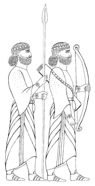 نیزهدار و کماندار داریوششاه در سنگنگاره بیستون