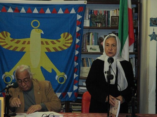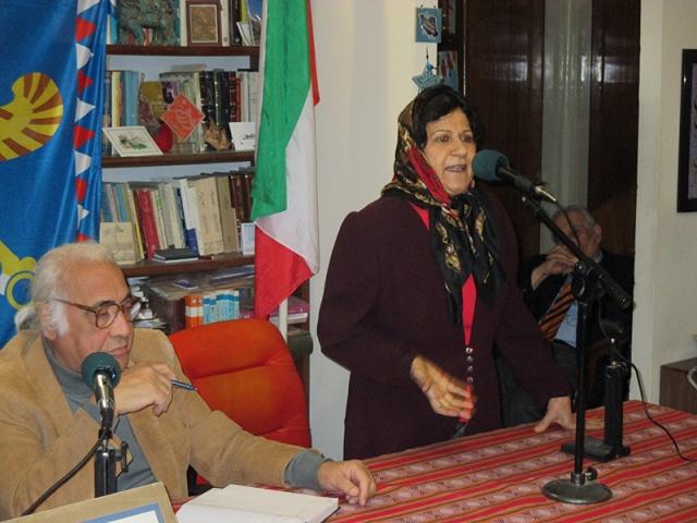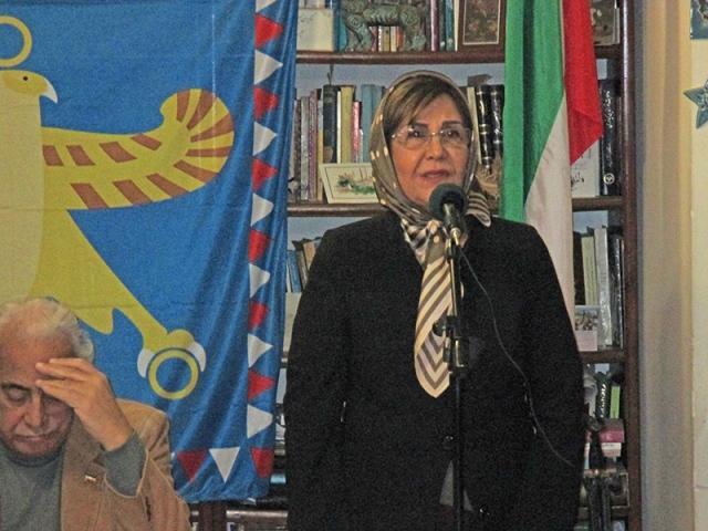 سپس بانو توران شهریاری به انگیزهی 19 آذر روزجهانی حقوق بشر با اشاره به کورش بزرگ و نخستین منشور حقوق بشر از سوی ایرانیان، سرودهای در این زمینه را به حاضران پیشکش کردند.