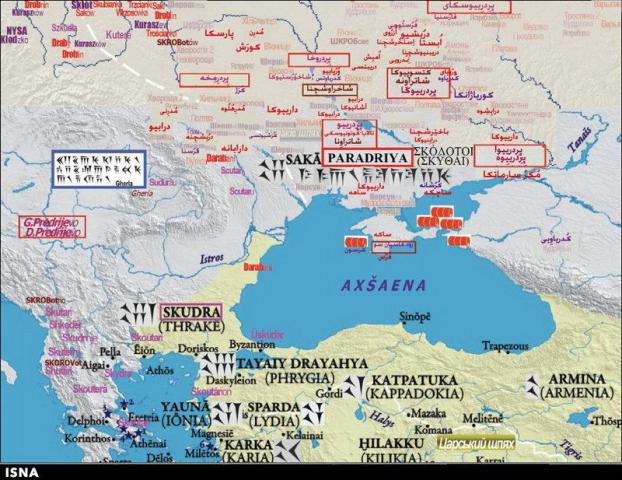 - در یکی از آخرین تحقیقات «جاینامشناختی زمینهای» شما، فرضیهای مطرح میشود که جنوب و مرکز اوکراین (یعنی زمینهایی مجاور با رودخانه دنیپر) زمانی بخشی از امپراتوری هخامنشیان بود. لطفاً خلاصه آنرا شرح دهید. مبنای استدلالی این نظریه چیست؟ جرقهی آن چگونه زده شد؟
