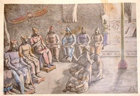رسام ارژنگی (عباس) سومین فرزند خانواده در سال 1271 خورشیدی در تبریز به دنیا آمد. دوران کودکی او همزمان با یورش های سربازان تزاری بود. ابتدا در مکتب خانه و سپس در مدارسی که در شهر تبریز تاسیس و تعطیل میشدند، به تحصیل پرداخت. از جمله، در مدرسه میرزاحسن خان رشدیه و مدرسه پرورش. در 18 سالگی یعنی در سال 1289 خورشیدی، بعد از مرگ پدر، به قصد ادامهٔ آموزش نقاشی عزم سفر کرد و به شهر تفلیس رفت.