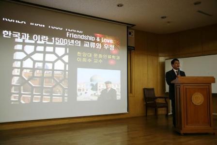 در این همایش پروفسور لی، رییس موزه دانشگاه هانیانگ در مقام دبیر همایش، پس از خوشامدگویی درباره «1500 سال ارتباط دوستانه ایران و کره» به سخنرانی پرداخت و احمد معصومیفر، سفیر کشور ایران هم در این همایش به «پایبستهای ارتباطی دو کشور در زمان معاصر» اشاره نمود.