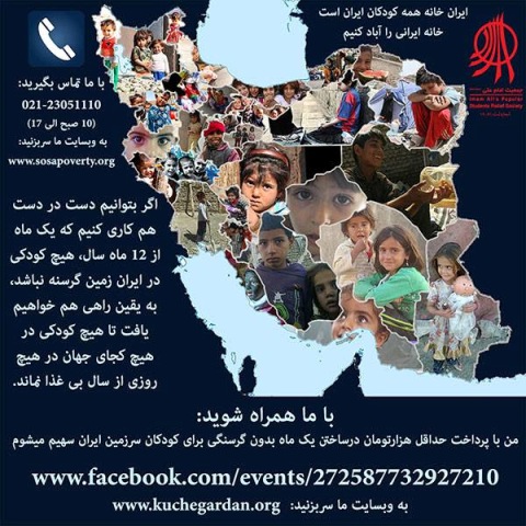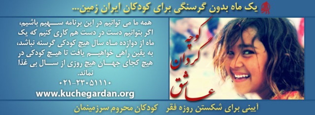 حداقل برای یک ما گرسنگی را ازخانه های کودکان بی پناه ساکن سرزمین ایران دور کنیم.