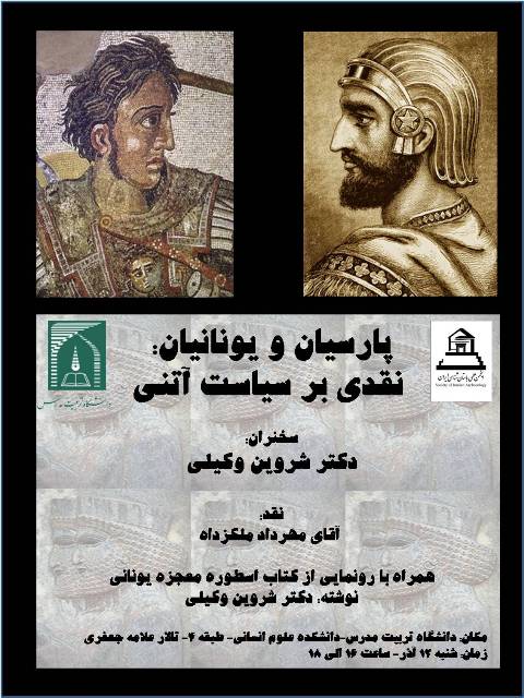 انجمن علمی باستان شناسی ایران و دانشگاه تربیت مدرس نشست «پارسیان و یونانیان: نقدی بر سیاست آتنی» با سخنرانی دکتر شروین وکیلی برگزار می کنند. گفتنی است در این نشست با رونمایی کتاب «اسطوره معجزه یونانی» نوشته دکتر وکیلی همراه است.