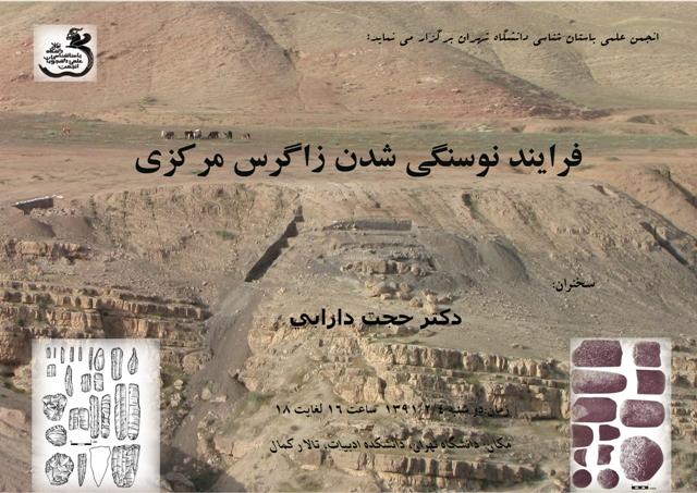 انجمن علمی باستان شناسی دانشگاه تهران سخنرانی با موضوع «فرایند نوسنگی شدن زاگرس مرکزی» با سخنرانی دکتر حجت دارابی، در روز دوشنبه 4/2/1391 از ساعت 16 تا 18، در تالار کمال دانشکده ادبیات دانشگاه تهران برگزار می نماید.