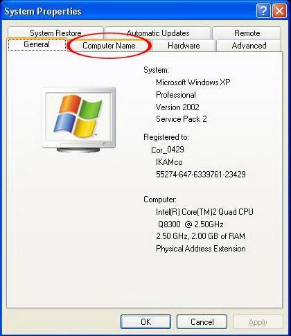 2 ) در روی برگه ( Form ) باز شده که دربرگیرندة مشخصات رایانة شما است ، برگة دوم یا عنوان Computer Name را انتخاب نمائید.