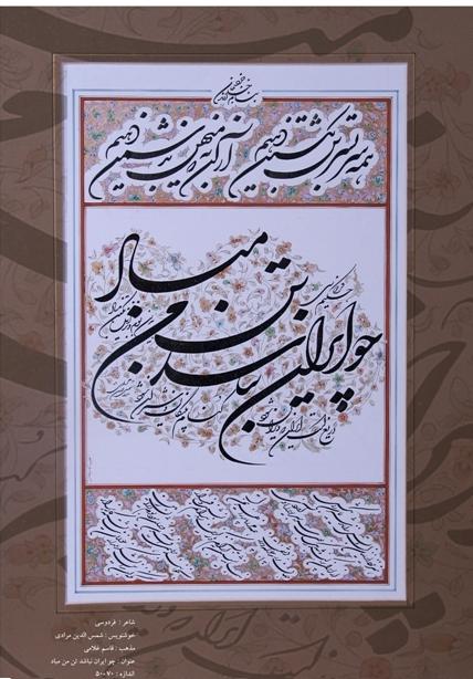 شایان ذکر است نمایشگاه «نیکبختی در هنر ایرانی» با هجده تابلوی اصل خوشنویسی از آثار شمسالدین مرادی و پنج تابلوی نقاشیخط محمد یاراحمدی آغاز به کار نموده و با برپایی کارگاه آزاد هنری این هنرمندان ممتاز خوشنویس کشور برای آفرینش آثار الهام گرفته از آموزههای اخلاقی شاهنامه فردوسی در تاریخ پنجم آوریل 2012 میلادی برابر با هفدهم فروردین ماه امسال به کار خود پایان خواهد داد.